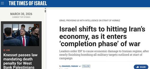 - Off-Ramp In Progress? Israeli Media Signals ‘Completion Phase’ Of Iran Warby Tyler Durden on March 30, 2026 at 7:40 pm